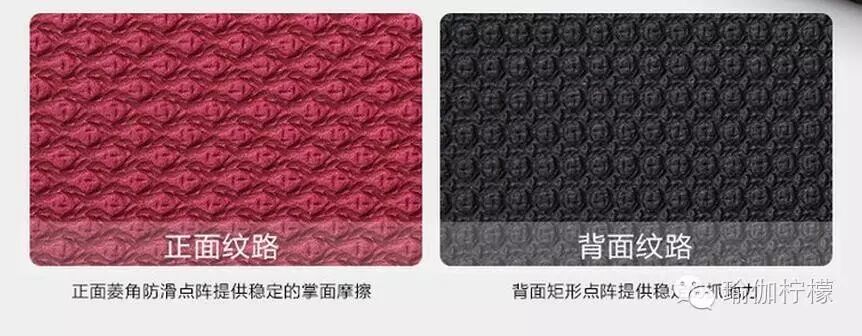 纯天然橡胶+生态聚氨酯的特殊处理,4mm,对比防滑性,不弃是不输土豪垫的。排汗排水性能突出,让你在练习时有种被吸附的安全感,对于想要不断进步超越自己的进阶练习者是非常好的选择。